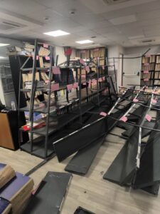 Αυτή τη φορά, στις 17-12-2025 κατέρρευσαν μεταλλικά ράφια τύπου Dexion στο καινούργιο κτήριο της Περιφερειακής Έδρας Περιστερίου του Πρωτοδικείου Αθήνας που εγκαινιάστηκε πριν δύο μήνες παρουσία του Πρωθυπουργού!